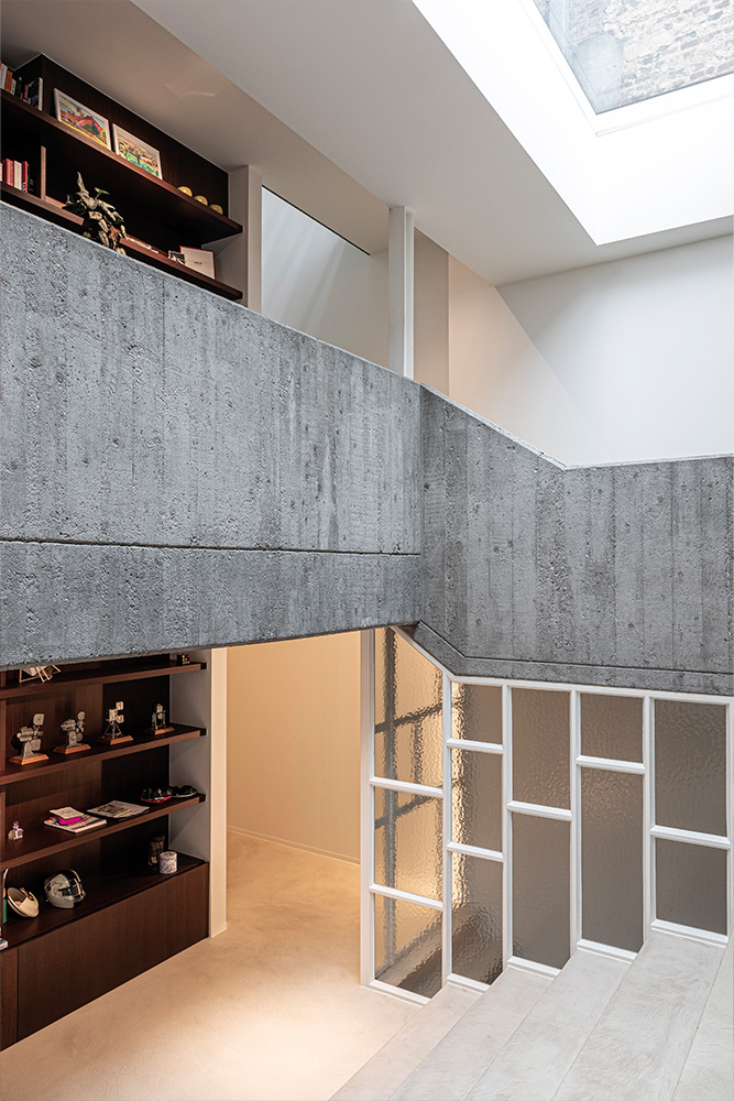 House BL is een eigentijdse eengezinswoning, ontstaan uit de transformatie van een Kortrijkse boekwinkel. De bestaande split-levels en de kenmerkende betonnen trap bleven behouden en werden het uitgangspunt van het ontwerp.